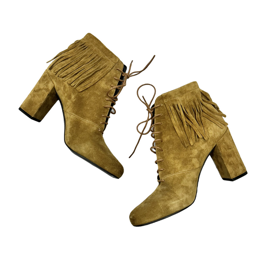 Boots Luxury Designer By Yves Saint Laurent In Tan, Size: 8.5