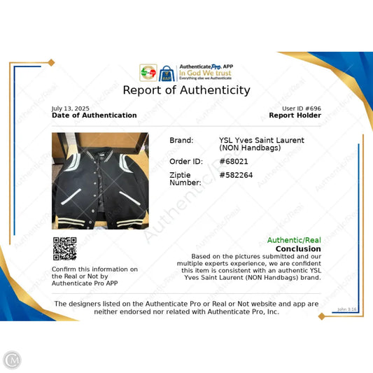 Jacket Luxury Designer By Yves Saint Laurent In Black & White, Size: L