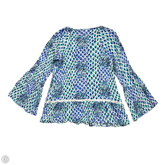 Top Long Sleeve Designer By Lilly Pulitzer In Blue & White, Size: S