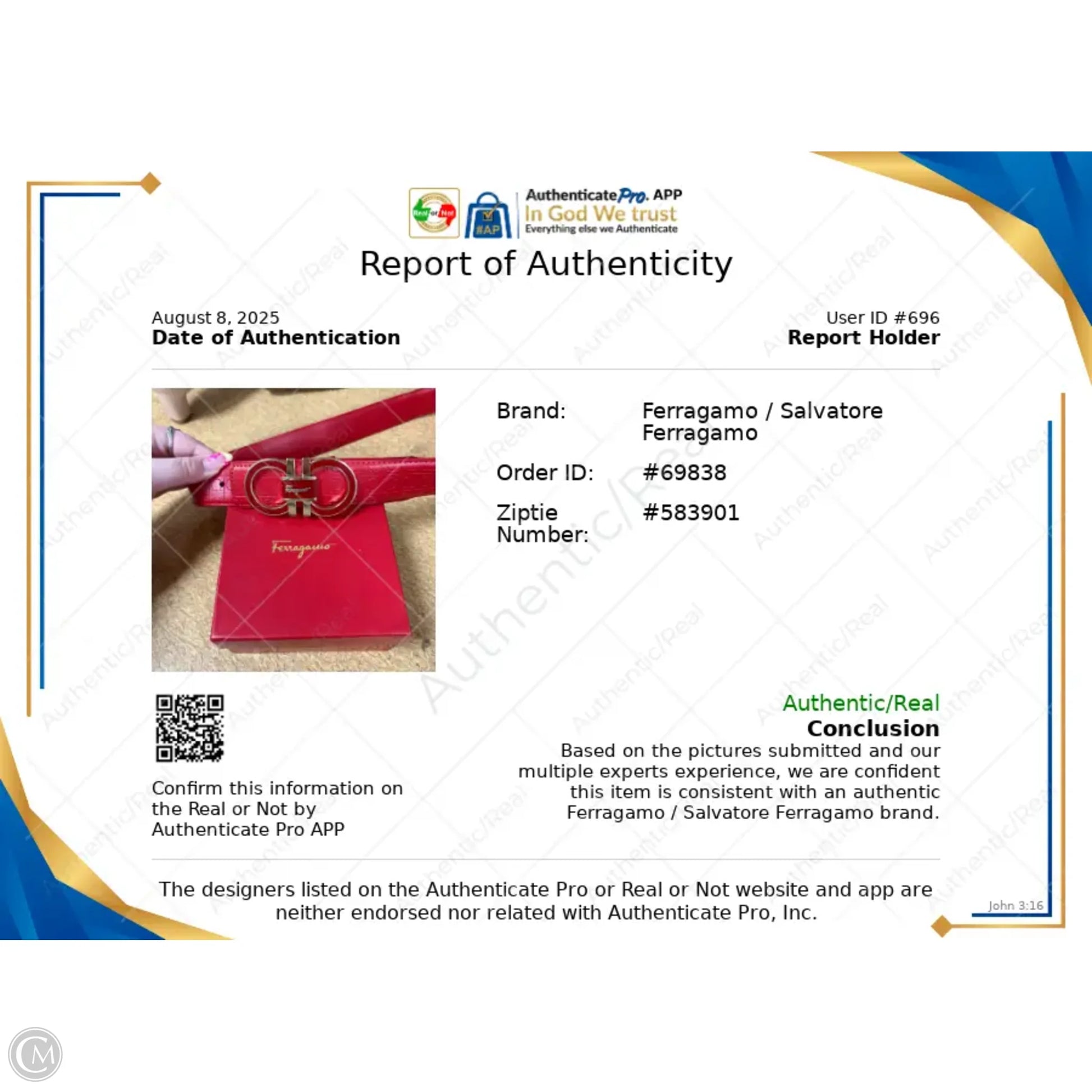 Belt Luxury Designer By Ferragamo, Size: M/L