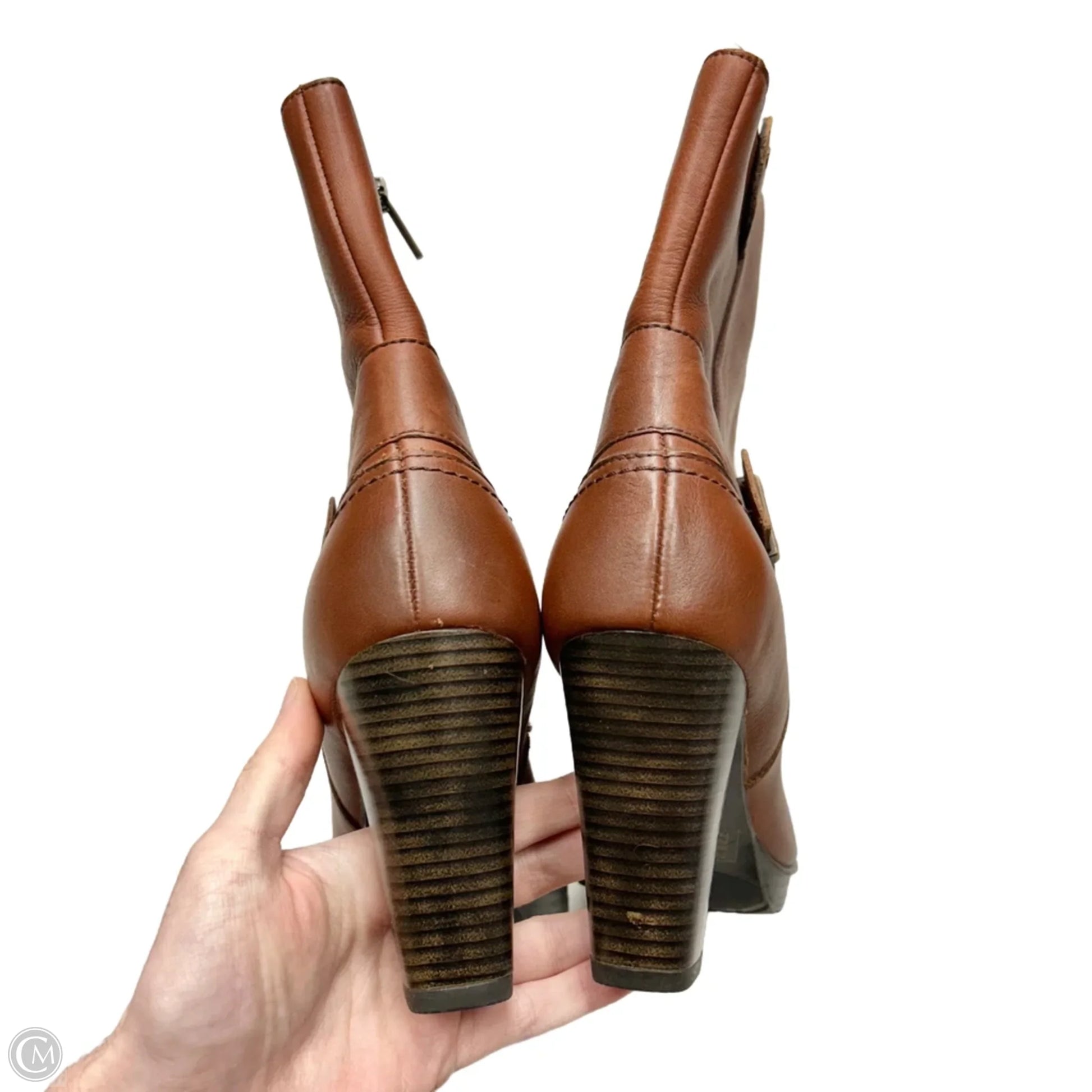 Boots Ankle Heels By Clarks In Brown, Size: 7