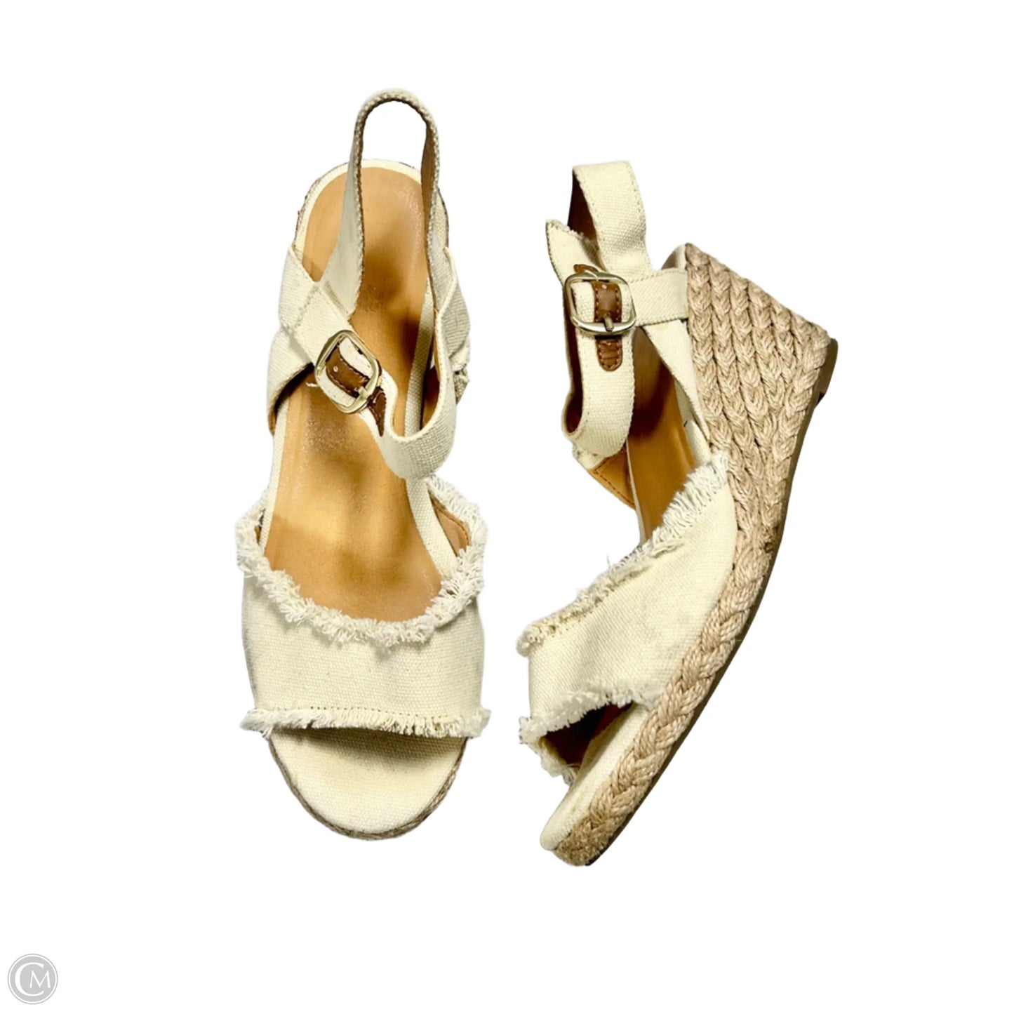 Step into luxurious comfort with these Tommy Bahama wedge sandals in creamy perfection. Size 8.5 embraces your feet with elegance, offering both style and support. Enhance your look effortlessly.