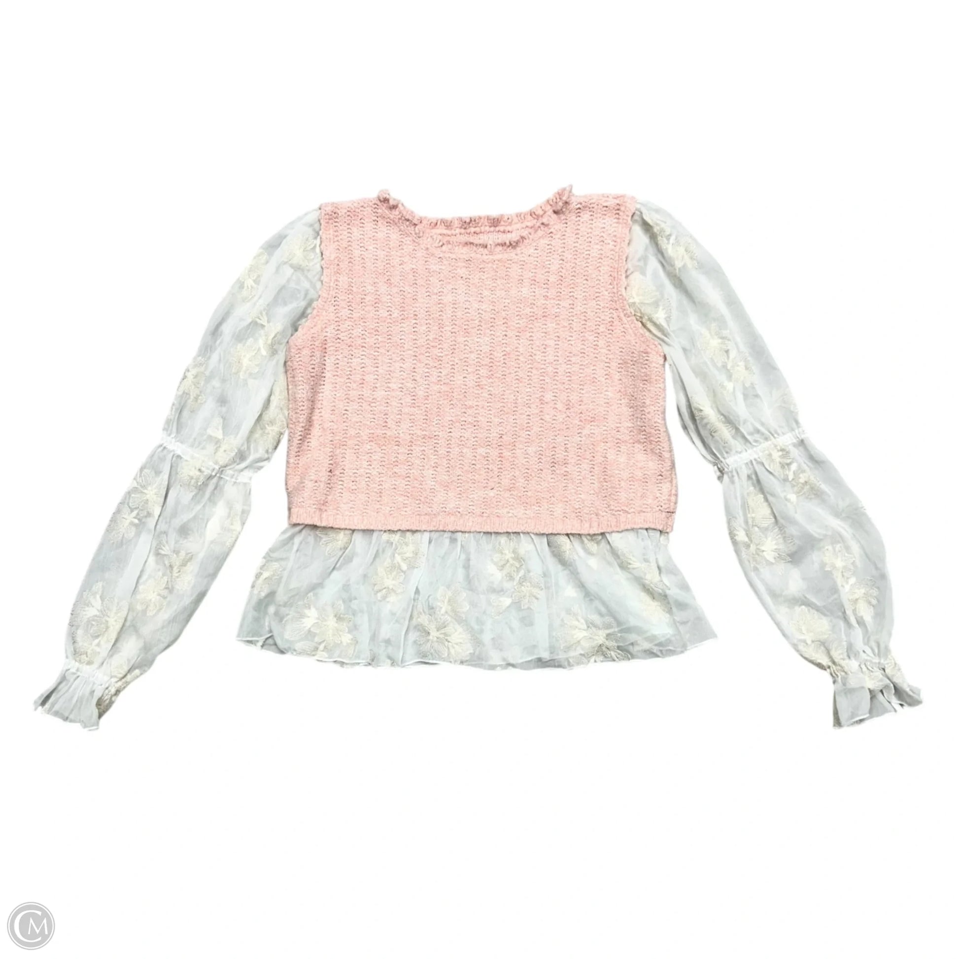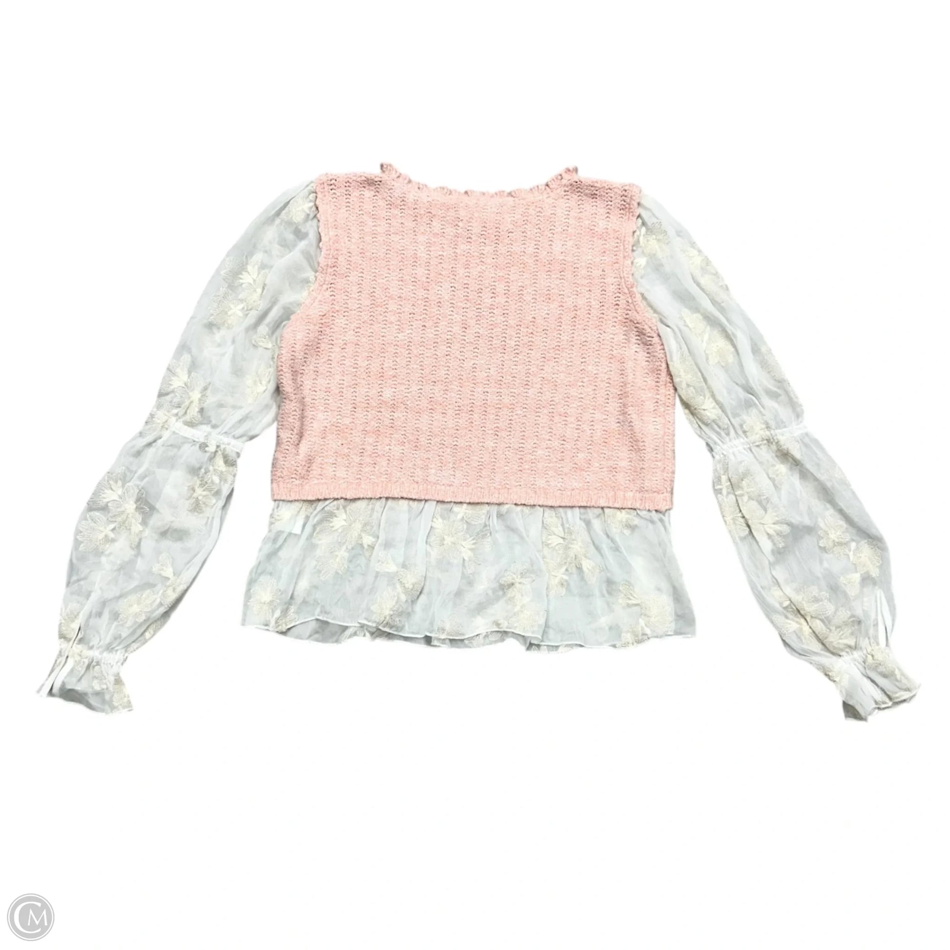 Top Long Sleeve By Anthropologie In Pink & White, Size: L