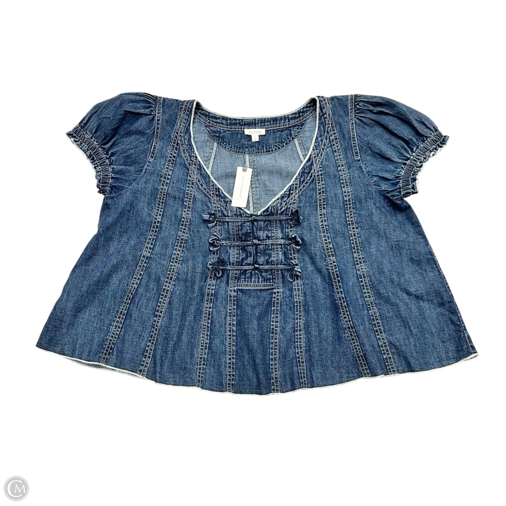 Top Short Sleeve By Pilcro In Blue Denim, Size: L